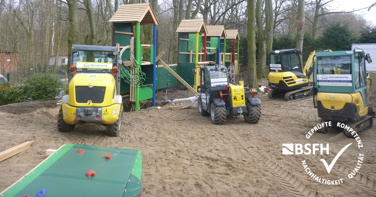 Sie alle bauen auf unser Fachwissen und unser Verantwortungsbewusstsein: Kitas, Schulen, Betreiber von Sportanlagen und öffentlichen Spielplätzen. Das Vertrauen, das unsere Auftraggeber in uns setzen, betrifft besonders die Sicherheit von Spielgeräten. Ob Schaukel, Rutsche oder Klettergerüst – alles, was wir aufbauen, ist grundsätzlich TÜV-geprüft und zertifiziert. Für die Qualität unserer Arbeit haben wir nun wieder eine Auszeichnung erhalten: das BSFH-Gütesiegel des Bundesverbandes für Spielgeräte- und Freizeitanlagenhersteller e.V.