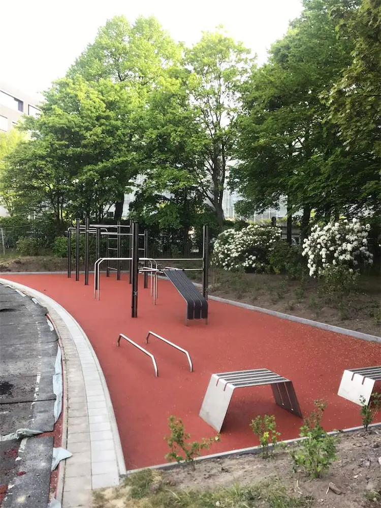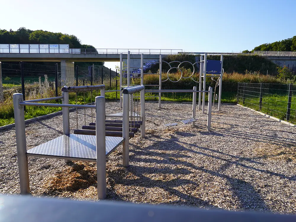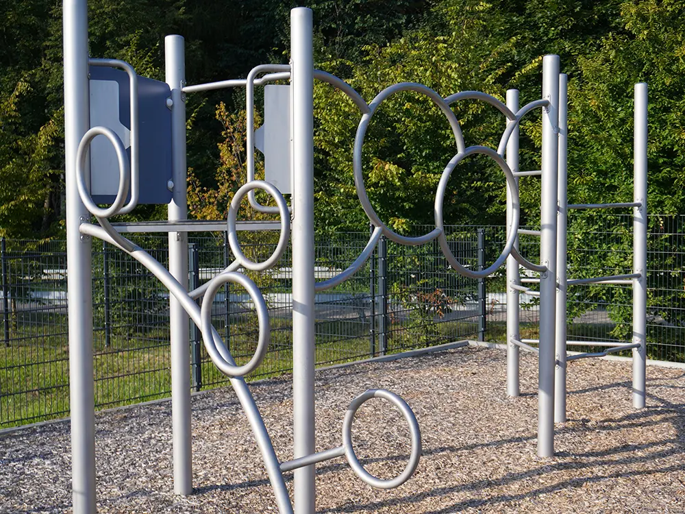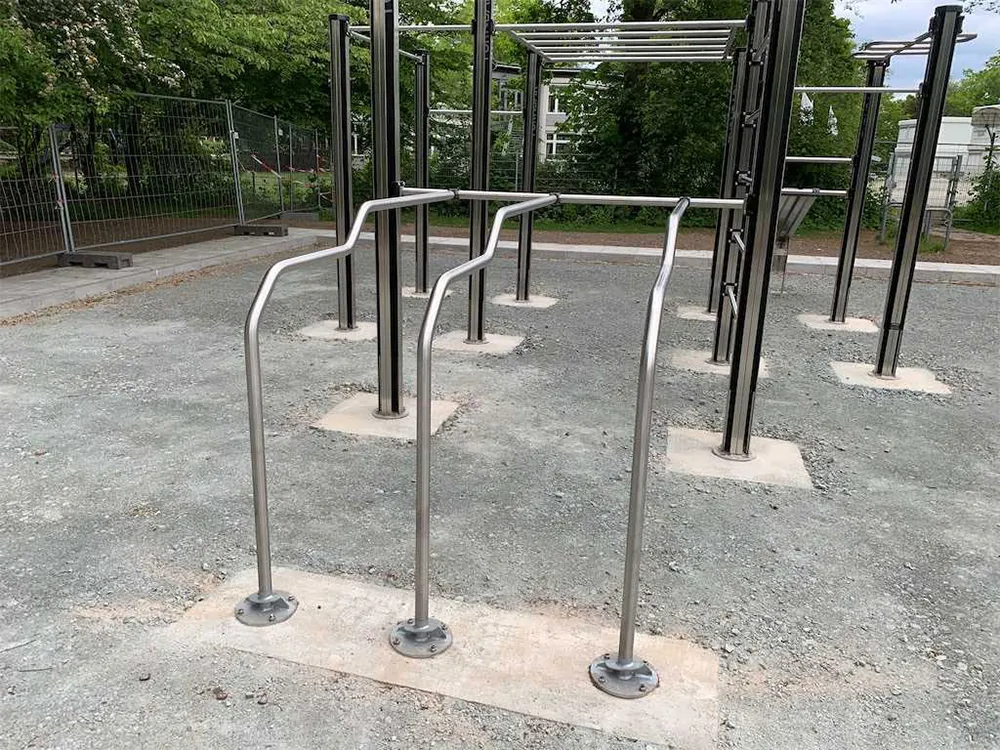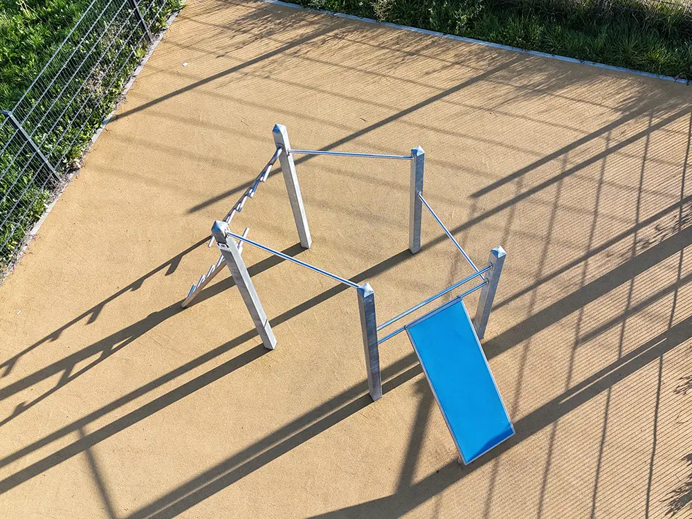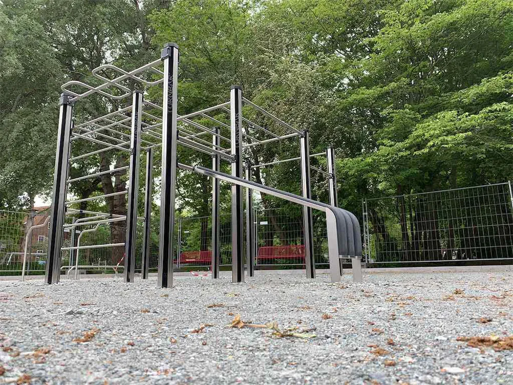 An den horizontalen und vertikalen Calisthenics-Stangen werden Übungen mit dem eigenen Körpergewicht durchgeführt, wie etwa Klimmzüge oder Dips. Das ist ein sehr wirkungsvolles Krafttraining. Die Calisthenics-Anlage eignet sich sowohl für „Individualisten“ als auch für Gruppen-Workouts.
