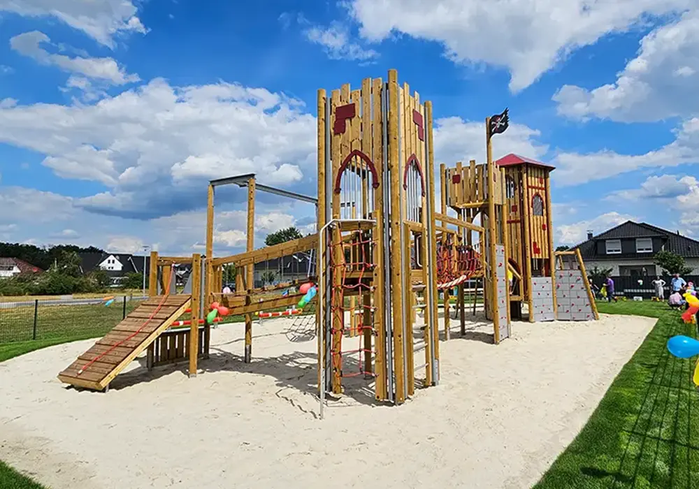 „Piratenspielplatz“ nennen die Wesendorfer das Areal mit den mittelalterlich anmutenden Spieltürmen, Kletternetzen und Rutschen, mit Balancierparcours, Wackel- und Reittieren. Der Gifhorner Rundschau fiel noch eine weitere Bezeichnung ein: „Spielplatz der Superlative“. Was für ein schönes Lob!