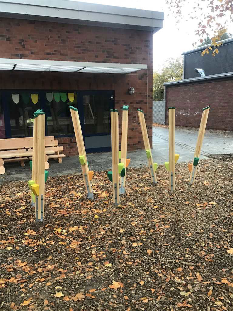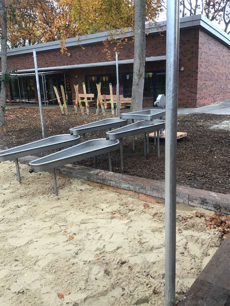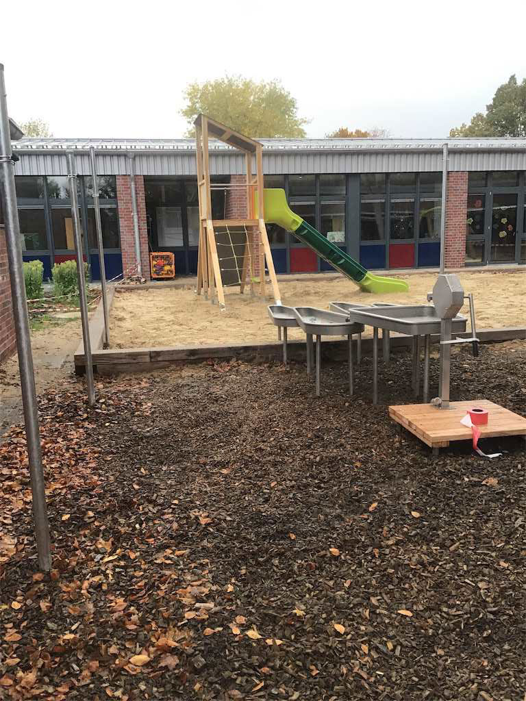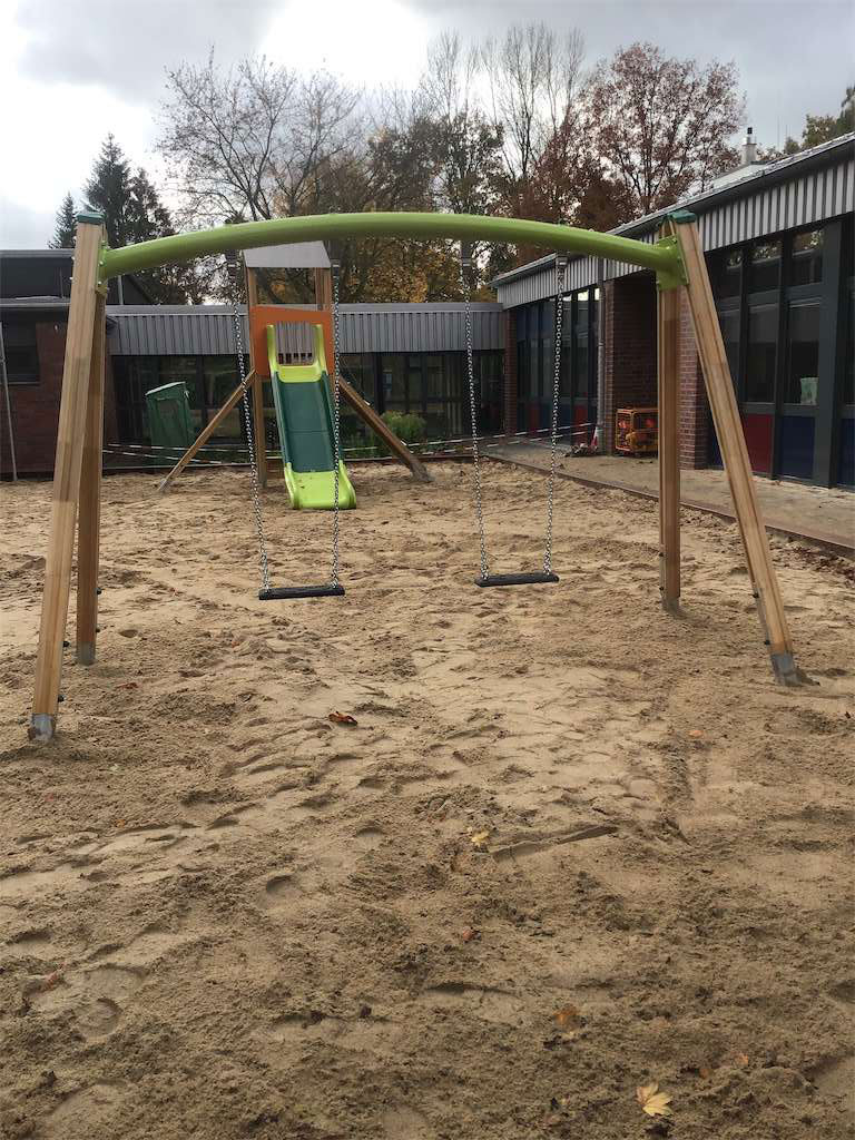 Das große Außengelände des neu gebauten Kindergartens war ideal, um für die Firma Wehrfritz fachgerecht die Spielplatzgeräte zu montieren. Neben einer zweifachen Schaukel, einem Balancierparkour und einem Turm mit Rutsche gibt es dort auch ein Indianer-Tipi und eine Wassermatschanlage. Nun können groß und klein ihrer Bewegungslust, ihrem Entdeckerdrang und ihren zahllosen kreativen Ideen freien Lauf lassen.