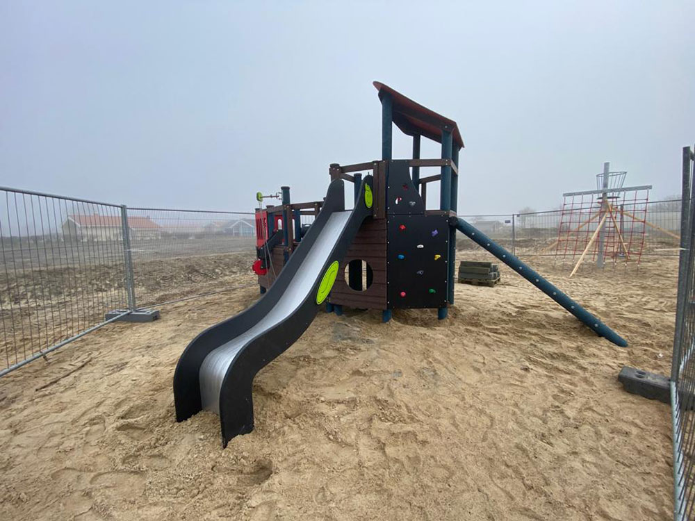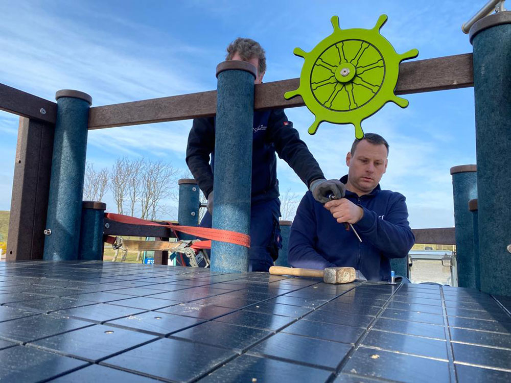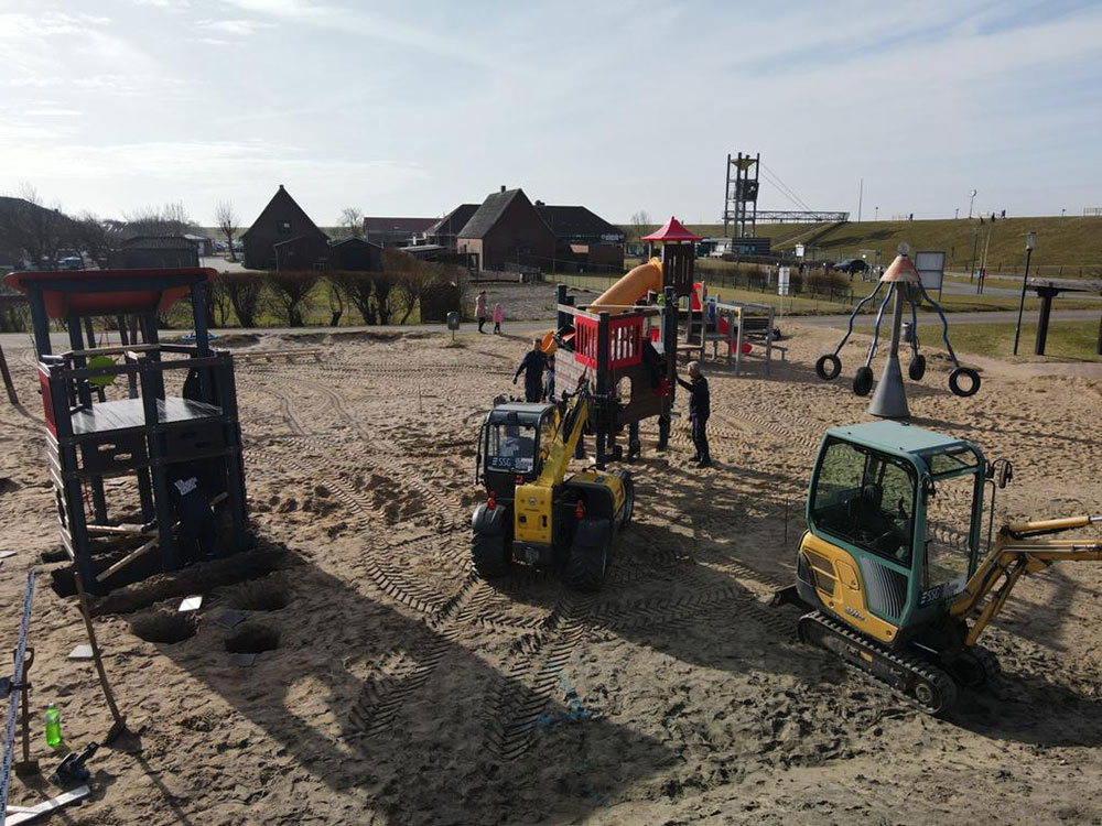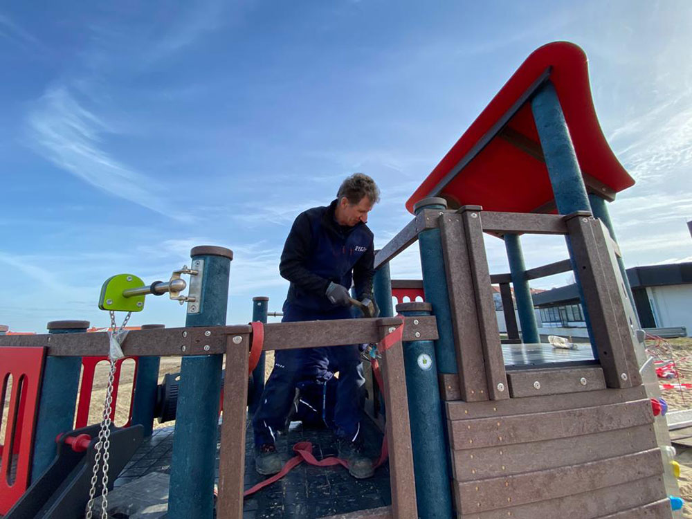 Kinder lieben Spielplätze. Und sie lieben Tiere. Da passt es, dass unsere Mannschaft den Auftrag bekam, direkt neben der Seehundstation in Friedrichskoog eine Montage durchzuführen. Der angrenzende Spielplatz sollte zwei neue Spielgeräte bekommen, die – wie sollte es auch anders sein – mit Wind und Meer zu tun haben: ein Spielschiff und einen Aussichtsturm. Wir haben die Geräte normkonform aufgestellt, den Fundamentbeton geliefert und die Baustelle anschließend mit einem Bauzaun gesichert. Nicht mehr lange, dann dürfen die Kinder sich in luftiger Höhe eine steife Brise um die Nase wehen lassen und Pirat oder Matrose spielen. Ach so: klettern, rutschen und buddeln dürfen sie natürlich auch.