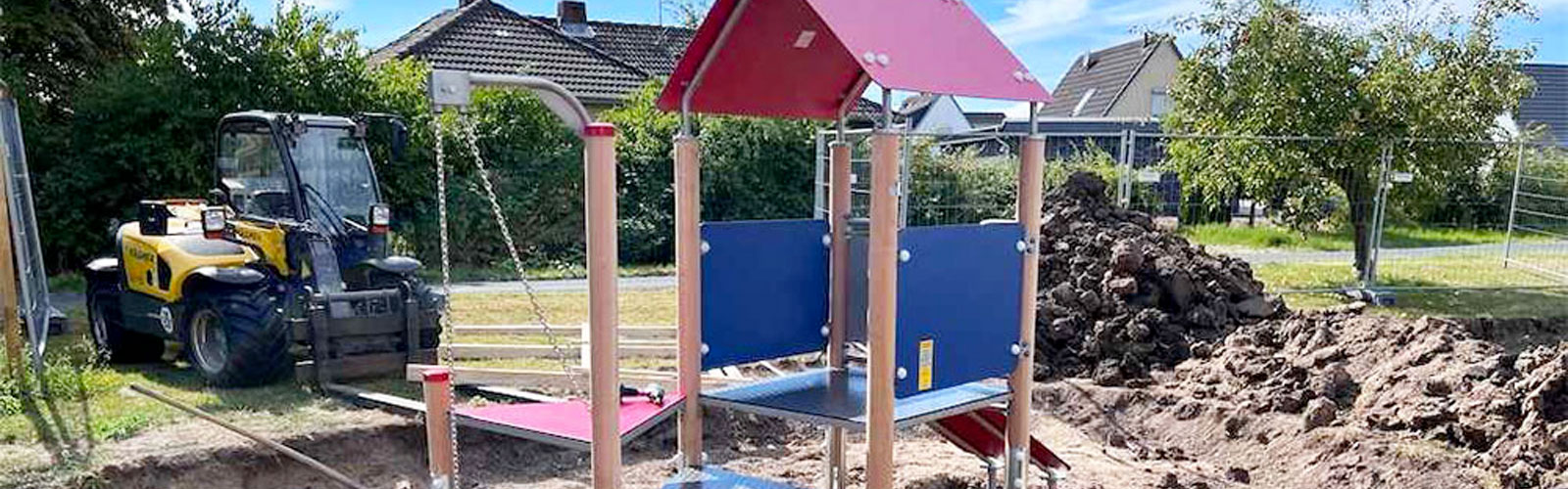 „Start frei für den Spielplatzsommer 2022!“ Das war das Motto des Senders Radio ffn und der Stiftung Sparda-Bank Hannover. Verschiedene Orte in Niedersachsen konnten sich um einen neuen Spielplatz bewerben und sechs wurden Gewinner. Darunter auch Nordenham in der Wesermarsch. Hier sollte unsere Mannschaft nun ihr Können im Spielplatzbau beweisen. Nichts lieber als das! Bei der Montage half uns ein nützlicher Kollege – unser Spielplatzkran, der mit seinem langen Schwenkarm Bauteile durch die Luft hievte. Damit haben wir tolle Spielgeräte installiert: zwei bunte Spieltürme, ein Bodentrampolin, eine Doppelschaukel und einen Seilkletterturm mit drei Nestschaukeln. Die Kinder nun so dankbar und glücklich spielen zu sehen, ist wunderbar und das Schönste an unserer Arbeit.