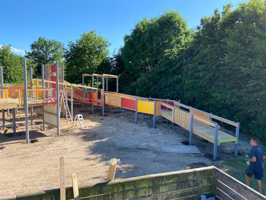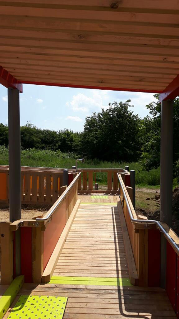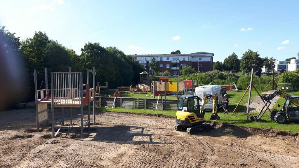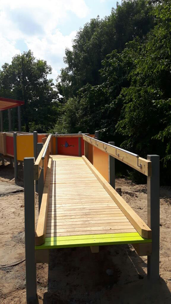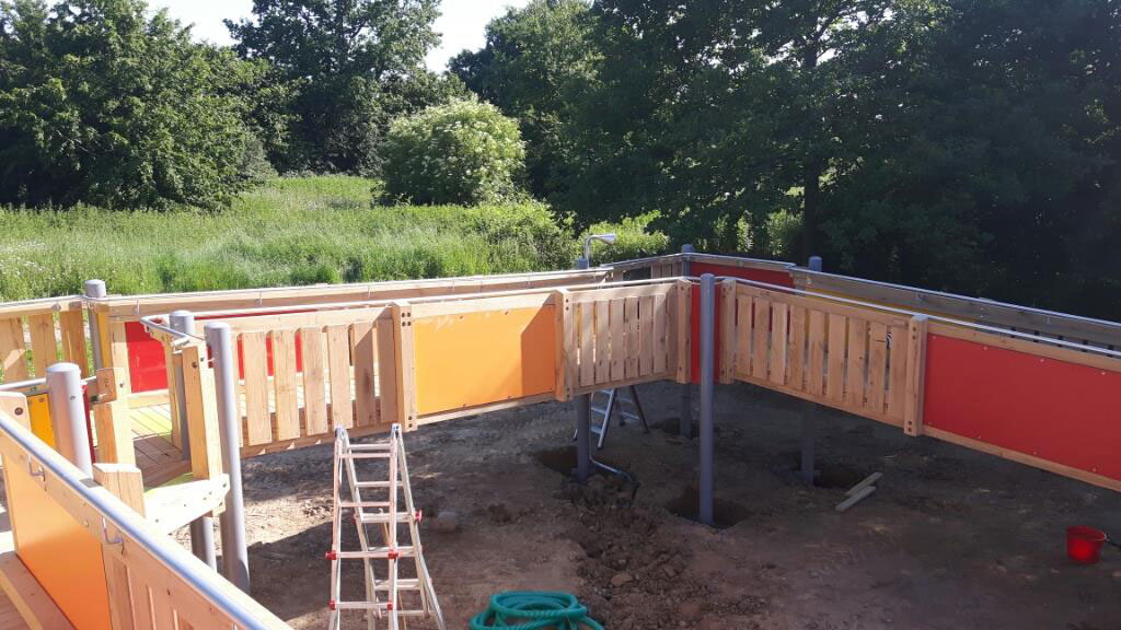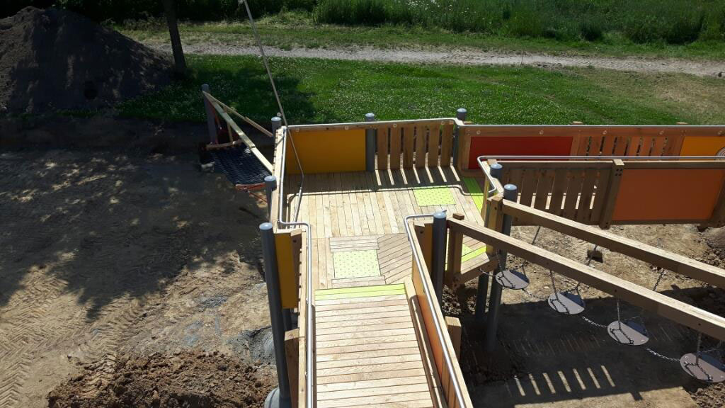 Für viele Kinder, die nicht laufen können oder anderweitig eingeschränkt sind, bleibt das Spielen mit anderen auf einem Spielplatz auch heute noch ein Traum. Nur wenige Spielplätze in Deutschland bieten bisher einen Zugang und geeignete Geräte Menschen mit Behinderung. Die siebenjährige Rollstuhlfahrerin Lena aus Flensburg hat Glück. Dort lässt die Just-Hansen-Stiftung derzeit einen integrativen Spielplatz erbauen, auf dem Kinder mit und ohne Handicap gemeinsam Spaß haben und ihre Fähigkeiten entfalten sollen. Die Spielplatz-Macher, die der Stiftung zu Weihnachten 2018 bereits einen Federwipper gespendet hatten, wurden von den Verantwortlichen gefragt, ob sie sich an der Gestaltung des neuen Spielplatzes beteiligen möchten. Und ob! Also sind wir aus Hamburg angerückt und haben eine abwechslungsreiche Spiellandschaft montiert, die für alle Generationen über Rampen zugänglich ist. Konstrastfarbene Bodenelemente mit unterschiedlichen Strukturen erleichtern die Orientierung auf dem weitläufigen Spielgerät. Jetzt können Kinder wie Lena alle anderen ganz selbstverständlich fragen: „Wollen wir auf den Spielplatz gehen?“