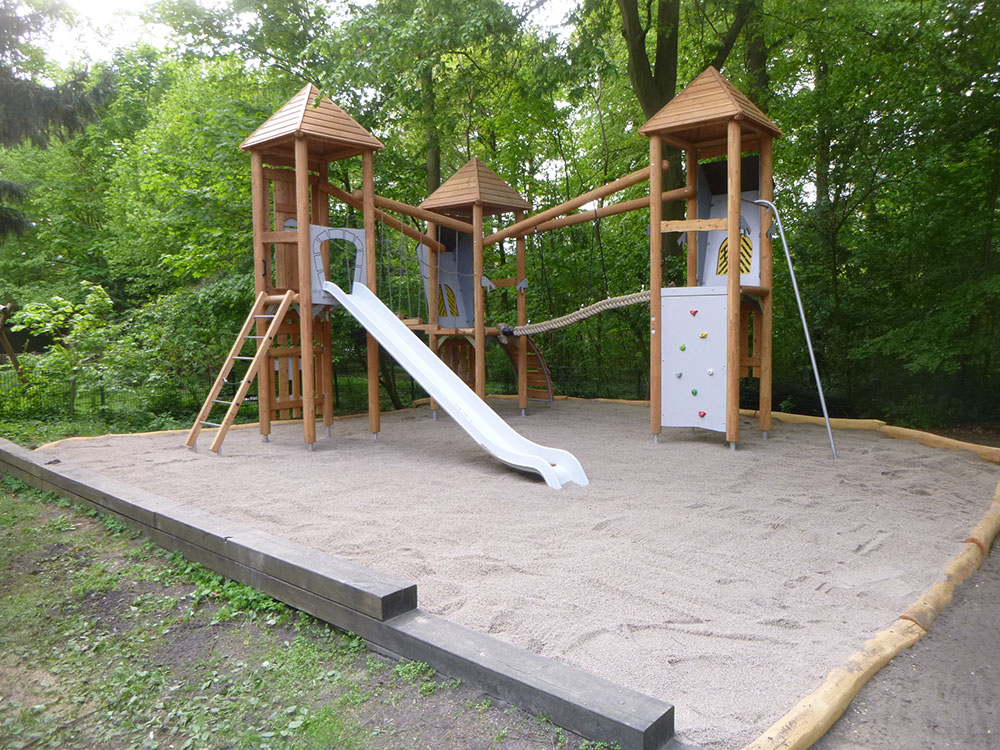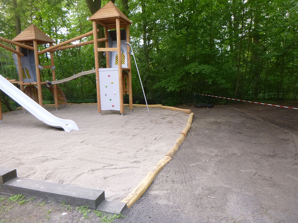 Alle Materialien, also das Spielgerät, die Sandkisteneinfassung und der Fallschutz, wurden von uns geliefert.