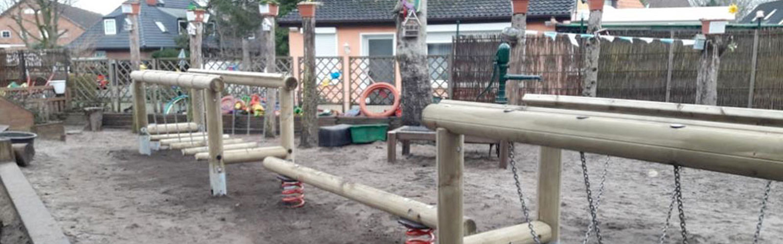Die Kita Wundertüte in Hamburg-Schnelsen bietet ihren Kindern gern jede Gelegenheit, sich viel und abwechslungsreich zu bewegen. Dazu bot sich früher das bei den Mädchen und Jungen beliebte Holzschiff an, doch das musste irgendwann aus Sicherheitsgründen entfernt werden. Was nun? Die Pädagoginnen suchten eine neue, herausfordernde Klettermöglichkeit und einigten sich mit unserer Mannschaft auf eine tolle Kletterstrecke, die u.a. Kraft, Gleichgewichtssinn und Kreativität trainiert. Wir haben die Anlage geliefert, einschließlich Fundamentbetonarbeiten montiert und die TÜV-Abnahme veranlasst. Und wie finden die Kinder das neue Spielgerät? Na, die sind begeistert und turnen, wann immer sie draußen sind, darin herum. Übrigens: Da der Verein Wundertüte die Anlage nicht vollständig aus Eigenmitteln finanzieren konnte, sprangen zwei renommierte Hamburger Institutionen ein: der Radio Hamburg Hörer helfen Kindern e.V. und die Erika und Ilse Töllke Stiftung. Herzlichen Dank für so viel Engagement!