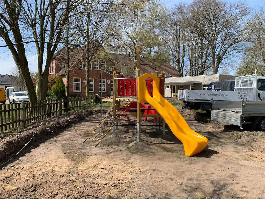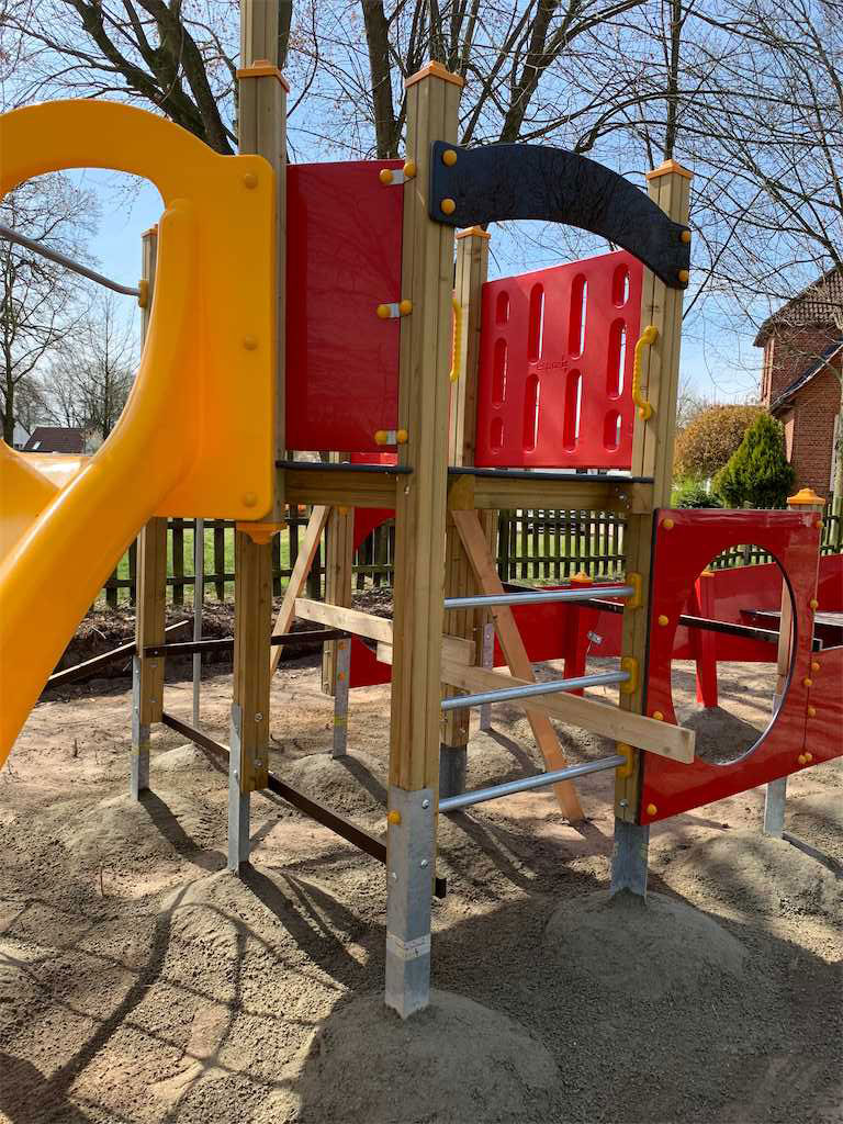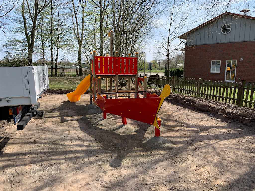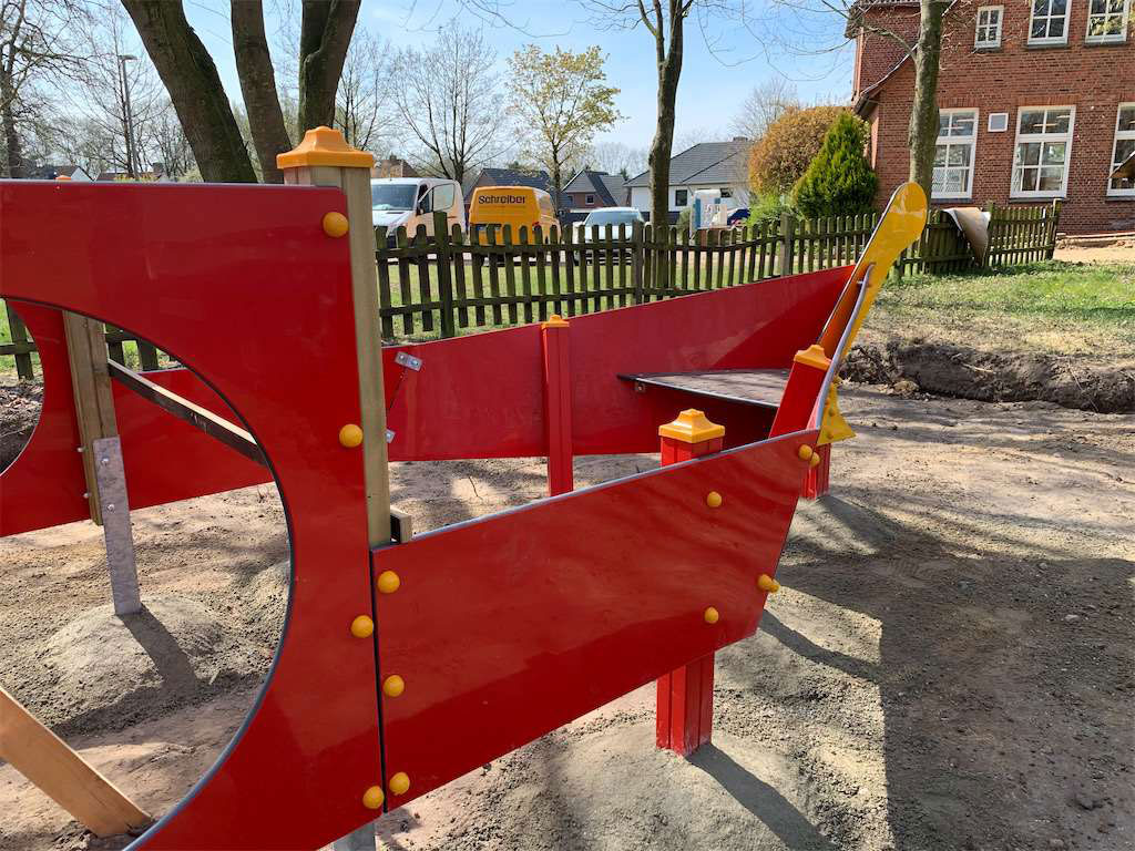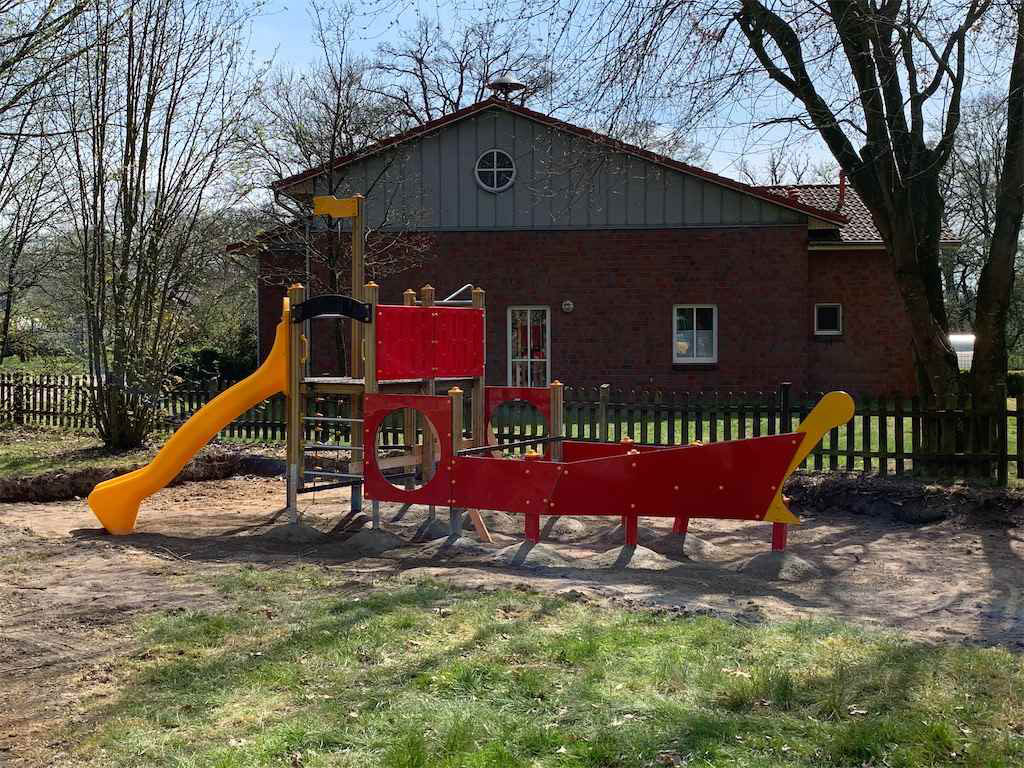 In der kleinen Gemeinde in Niedersachsen heißt es jetzt: „Alle an Bord der MS-Fulda!“ Das Sandkastenschiff aus dem Hause espas Spielgeräte mit Kletterturm, Kletternetz, Kletterstange und Rutsche regt die Fantasie an und fördert den natürlichen Bewegungsdrang der Kinder. Und falls es mal plumps macht, ist der Sand ein prima Fallschutz.