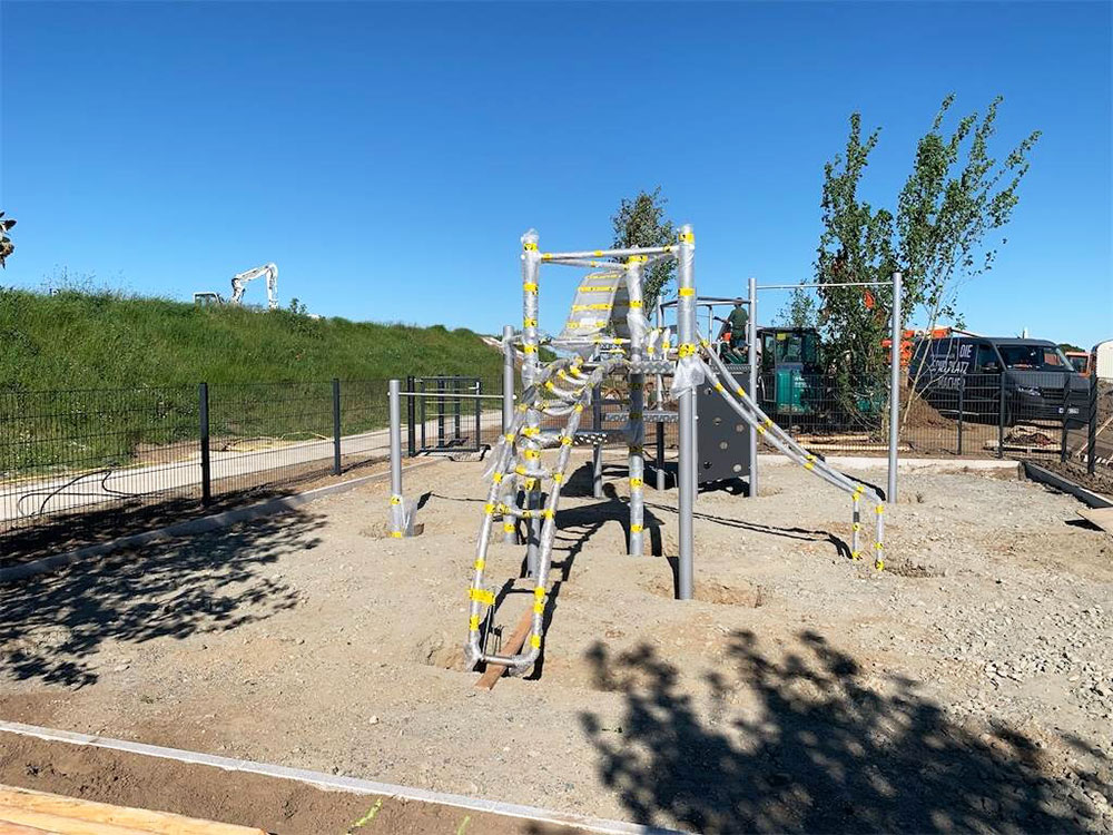 Die Fallschutzflächen wurden im Zuge des Ratsplatzumbaus vom Team des Auftraggebers gelegt.