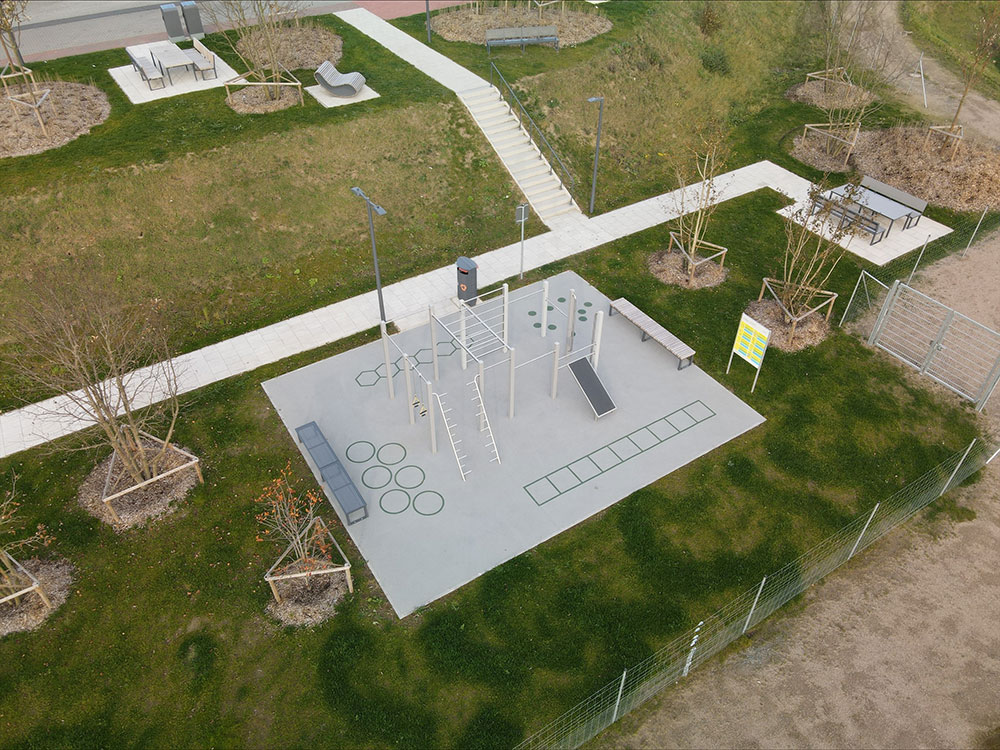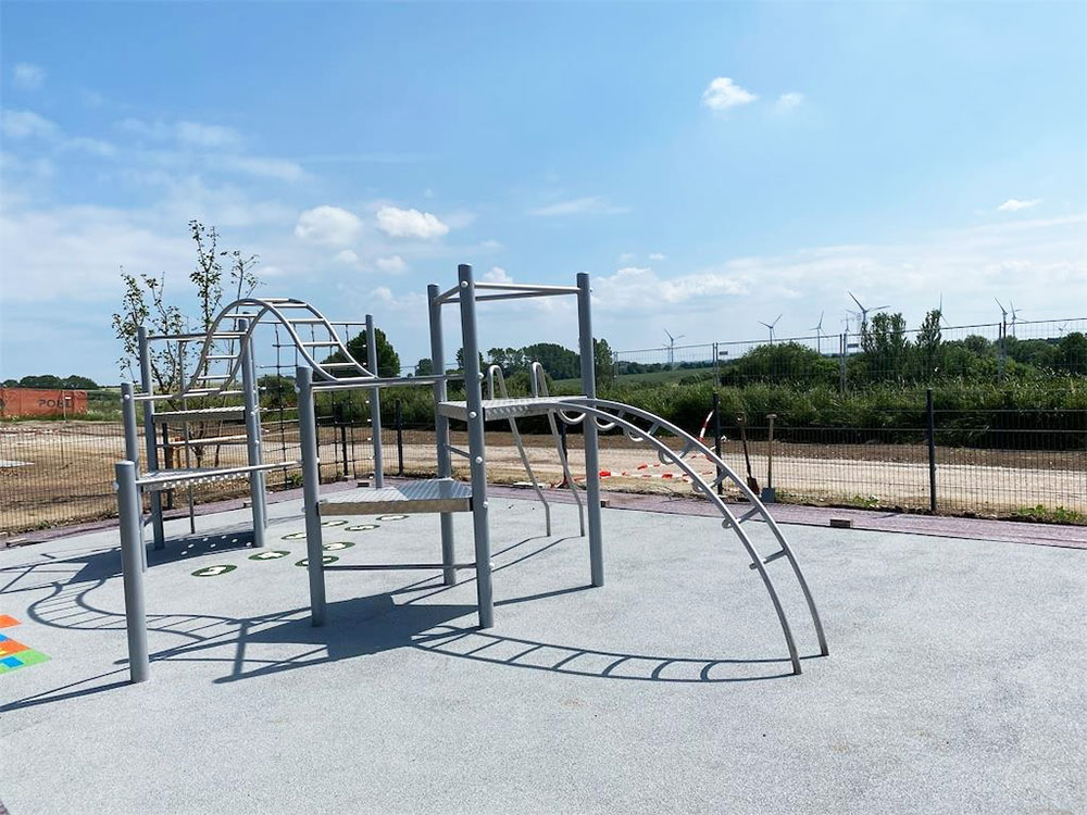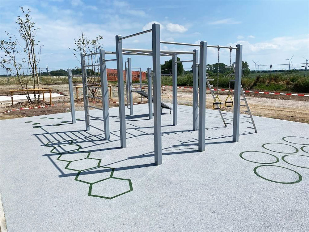 Für so eine „bewegte Pause“ (in Frankreich übrigens schon lange üblich) sorgen wir natürlich gern und haben eine Kletterkombi und eine Calisthenics-Anlage montiert.