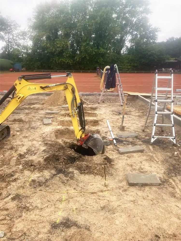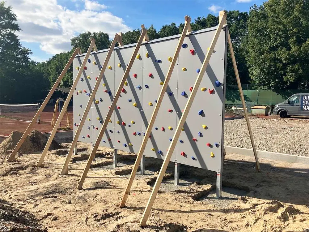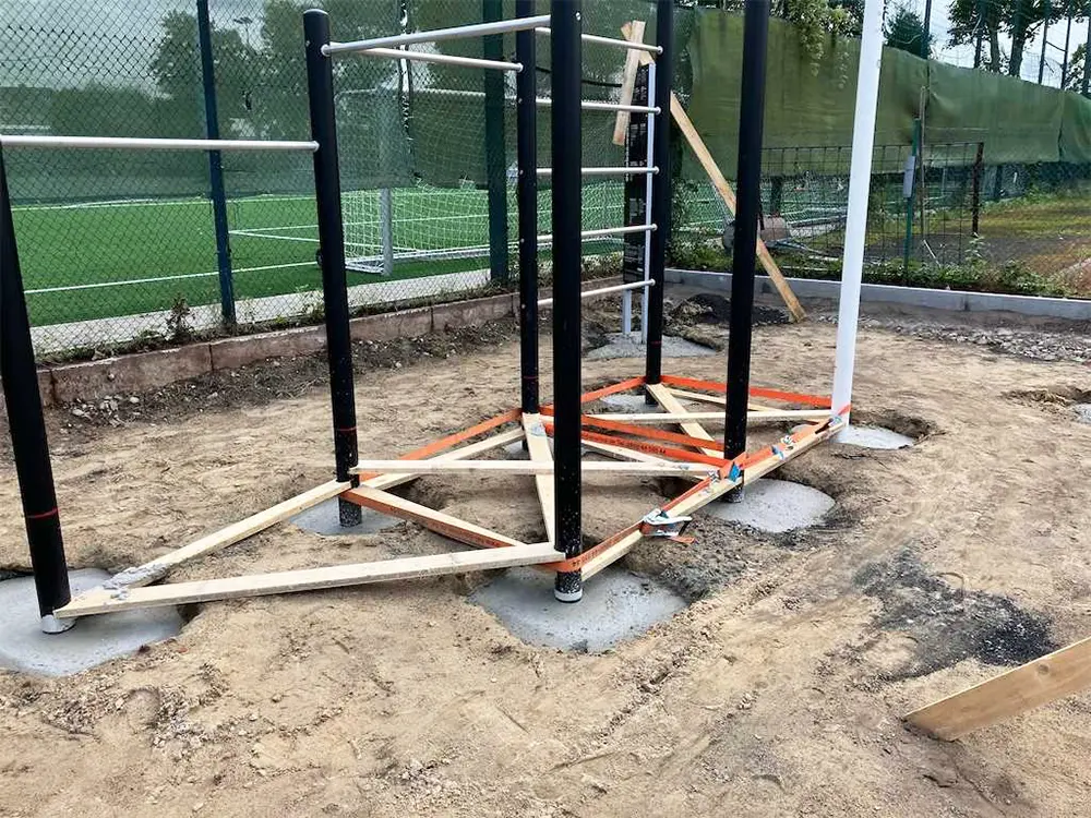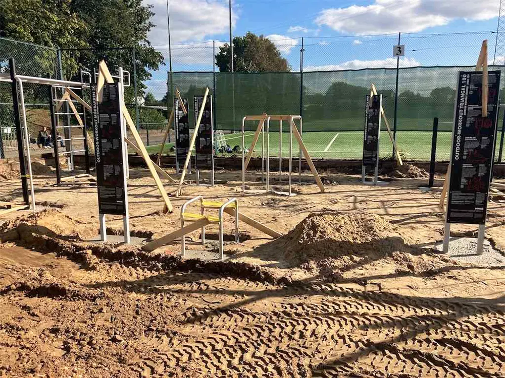 Auch wenn es um Sport geht, sind DIE SPIELPLATZ-MACHER gern dabei. Wir setzen uns seit Längerem dafür ein, Spielbereiche auf Sportarealen einzurichten. In diesem Fall ging es aber darum, selbst Sportgeräte aufzustellen, die von der Firma Spielplatzgeräte Maier geliefert wurden. Dazu haben wir auf dem Gelände zunächst die Fläche ausgekoffert und Fundamentbeton eingebracht. Anschließend wurden die Calisthenics-Geräte einschließlich passender Schilder mit Übungsanleitungen und die Boulderwand montiert. Calisthenics-Training fördert den Muskelaufbau, stabilisiert den Bewegungsapparat, dehnt die Faszien und verbessert die Koordinationsfähigkeit. Und unsere Mannschaft freut sich, dass sie wieder ein Rundum-zufrieden-Paket abliefern konnte.