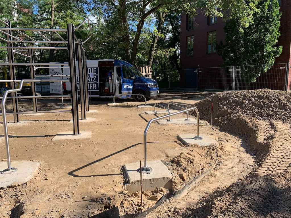 „Da sind wir wieder!“, freute sich unser Spielplatz-Macher-Team, als wir zum wiederholten Mal im Jahr 2020 nach Berlin bestellt wurden. Im Stadtteil Spandau sollten wir einen Bewegungsparkour der Firma Turnbar montieren – gesagt, getan! Nun können groß und klein, alt und jung gemeinsam Outdoor-Sport treiben, denn die Calisthenics-Geräte eignen sich hervorragend, um in jeder Alsterklasse Kraft, Balance, Ausdauer und Beweglichkeit zu trainieren. Von daher sind sich alle auf dem Platz einig: Dit is‘ ’ne jute Sache!