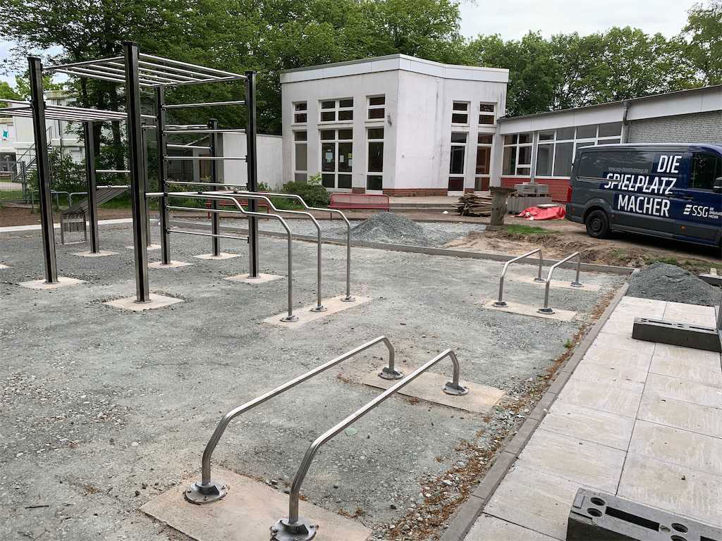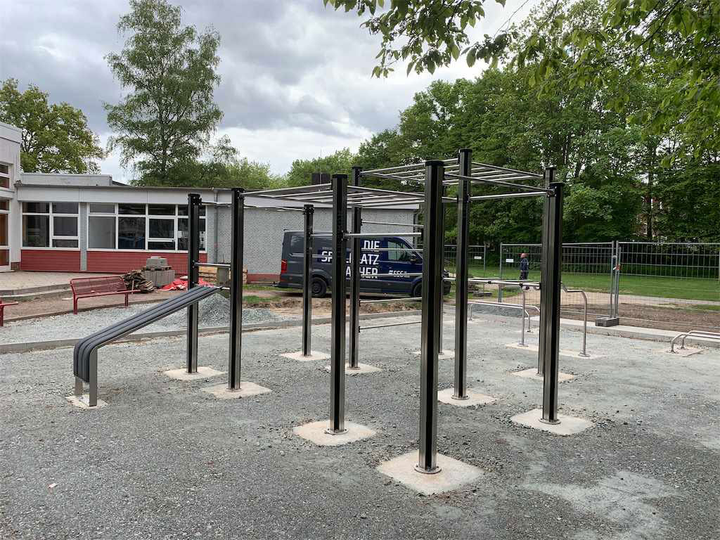 Immer mehr Städte und Gemeinden bieten ihren Bürgern öffentliche Möglichkeiten, ihre Fitness zu trainieren. Bremen spielt da gern mit und hat uns beauftragt, in einem Park eine Turnbar zu montieren. Hier können die Bremer nun ausgiebig Klimmzüge, Kniebeugen, Knieheben, Beinheben, Muscle-ups und Bauchübungen trainieren. Die Gerätekomponenten fordern Kraft, Gleichgewichtssinn, Ausdauer und Beweglichkeit heraus, sodass der ganze Körper auf seine Kosten kommt. Dann mal los!