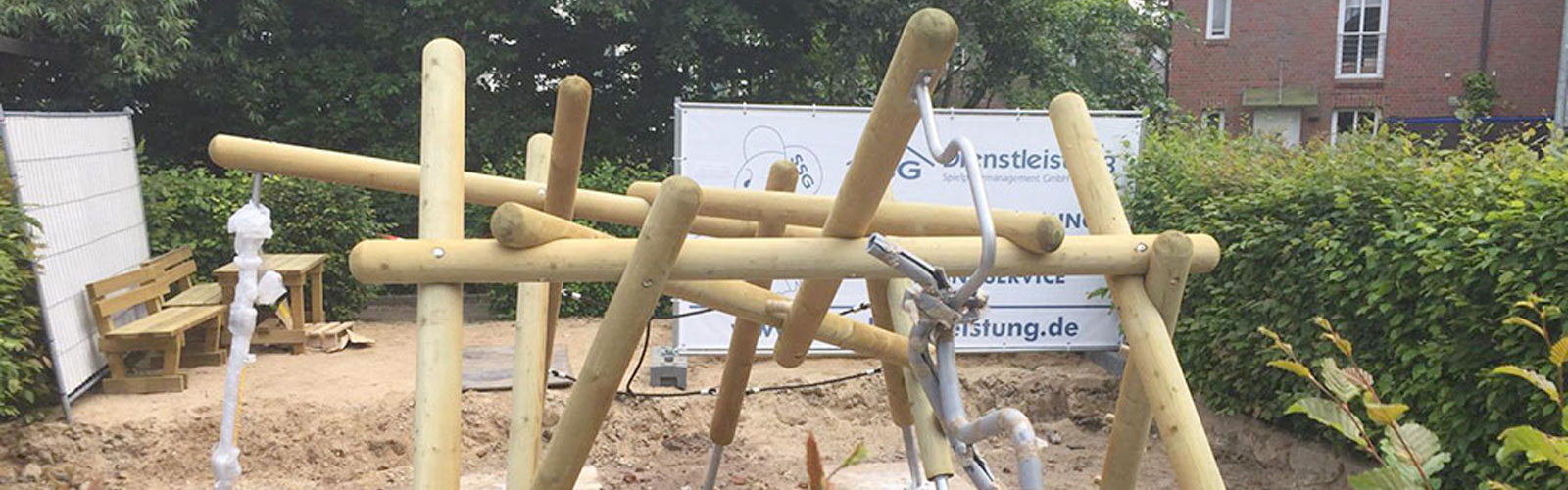 Auch unter erschwerten Platzbedingungen gelingt es unserer Mannschaft, etwas auf die Beine zu stellen. In diesem Fall einen tollen Spielplatz zum Klettern, Sandburgenbauen und Ausruhen. Alle Teile und Materialien haben wir geliefert, die Spielgeräte montiert und Fallschutzkies eingebracht. Die von uns aufgestellte Baustellensicherung wurde am Schluss wieder abtransportiert und der Platz sauber und spielfertig hinterlassen.