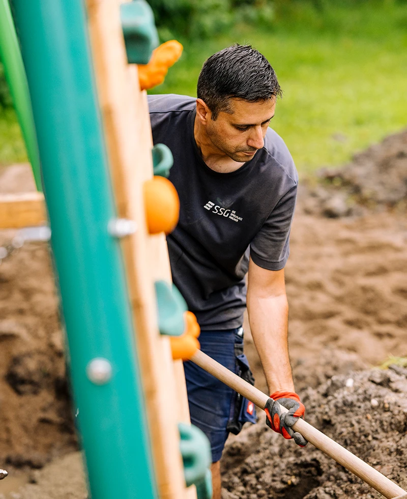 Wir Spielplatz-Macher sorgen dafür, dass Dein Spielplatz fachgerecht aufgebaut wird – nach allen gültigen DIN-Normen und mit modernster Ausrüstung. Vom Fundament bis zum letzten Feinschliff übernehmen wir die komplette Montage. Das Ergebnis: ein Spielplatz, der hält, was er verspricht – und sofort Freude macht.