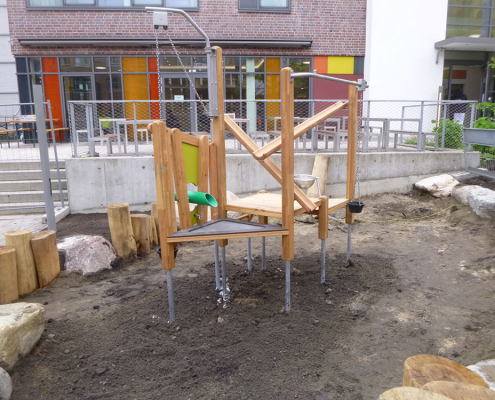 Andererseits Spielgeräte, die die kindliche Selbstständigkeit und Freude an der Bewegung fördern.