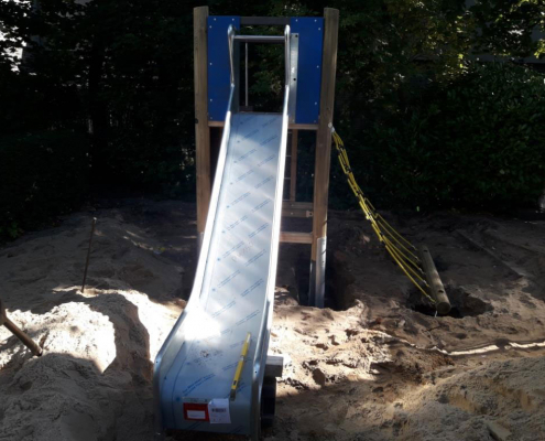 Das unterscheidet unser Teppichvlies vom herkömmlichen Kunstrasenaufbau und ist besonders interessant für Spielhügel und Rutschhänge, denn die benötigen natürlich einen guten Erosionsschutz.