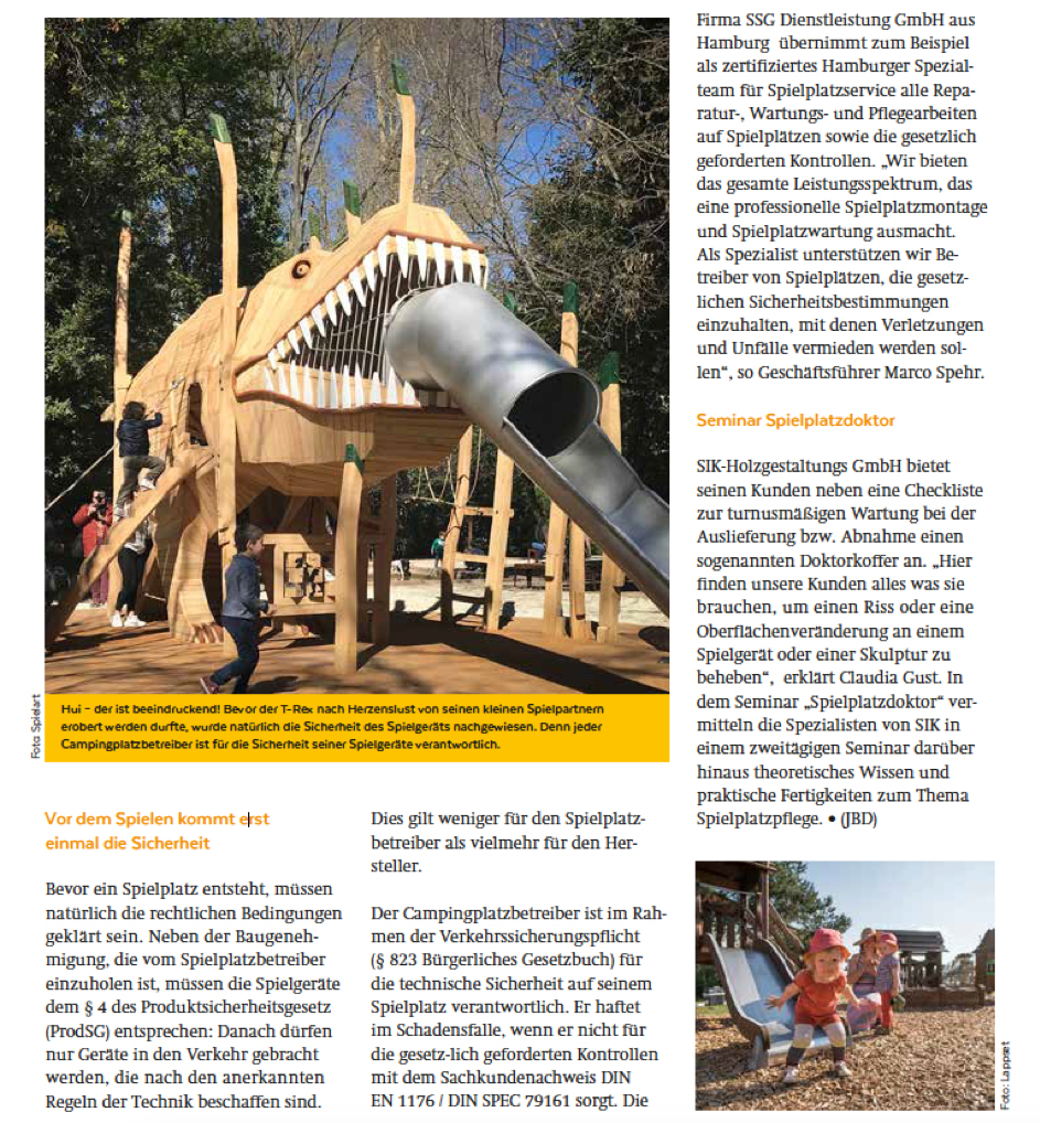 Vor dem Spielen kommt erst einmal die Sicherheit. Diese wichtige Erkenntnis für den Bau und Betrieb von Spielplätzen hat das Fachmagazin „Camping Wirtschaft Heute“ in einem aktuellen Beitrag thematisiert und dazu auch SSG-Geschäftsführer Marco Spehr befragt: